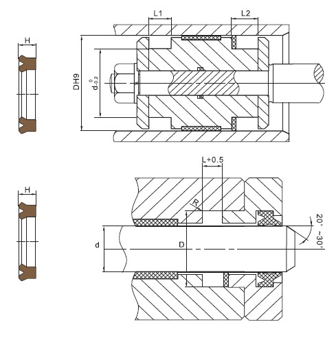 2. 应用范围 轻载荷及中等载荷的液压往复运动环境。已广泛应用于各工业领域,如行走机械、轻工机械、农业机械、注塑机械、叉车、起重机、汽车、林业和采矿机械等。在恶劣的工作条件下,也具有良好的机械特性。 设计选用时可参考Trelleborg公司RUB系列,DZ公司UN系列标准。 3. 特性及优点 1.非常便于安装; 2.对重载和活塞杆弯曲没有影响; 3.与双唇形式比较,在低压范围内摩擦力较小; 4.尤其是在产生弯曲和拉伸时,能具有抗撕裂性; 5.高耐磨性、低压缩变形和良好的抗挤出性能。 |