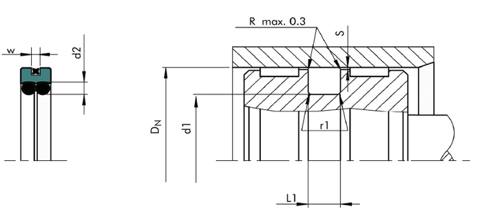 7.沟槽设计简单,安装空间小。沟槽尺寸符合ISO 7425/1,可与格来圈、斯特封等互换;