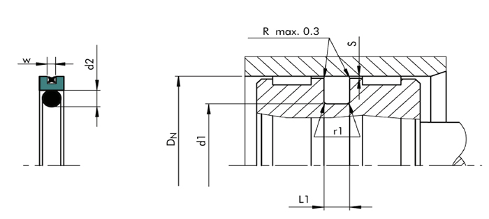 密封安装在ISO7425标准的沟槽中。设计选用时请参考Trelleborg公司AQ系列标准。